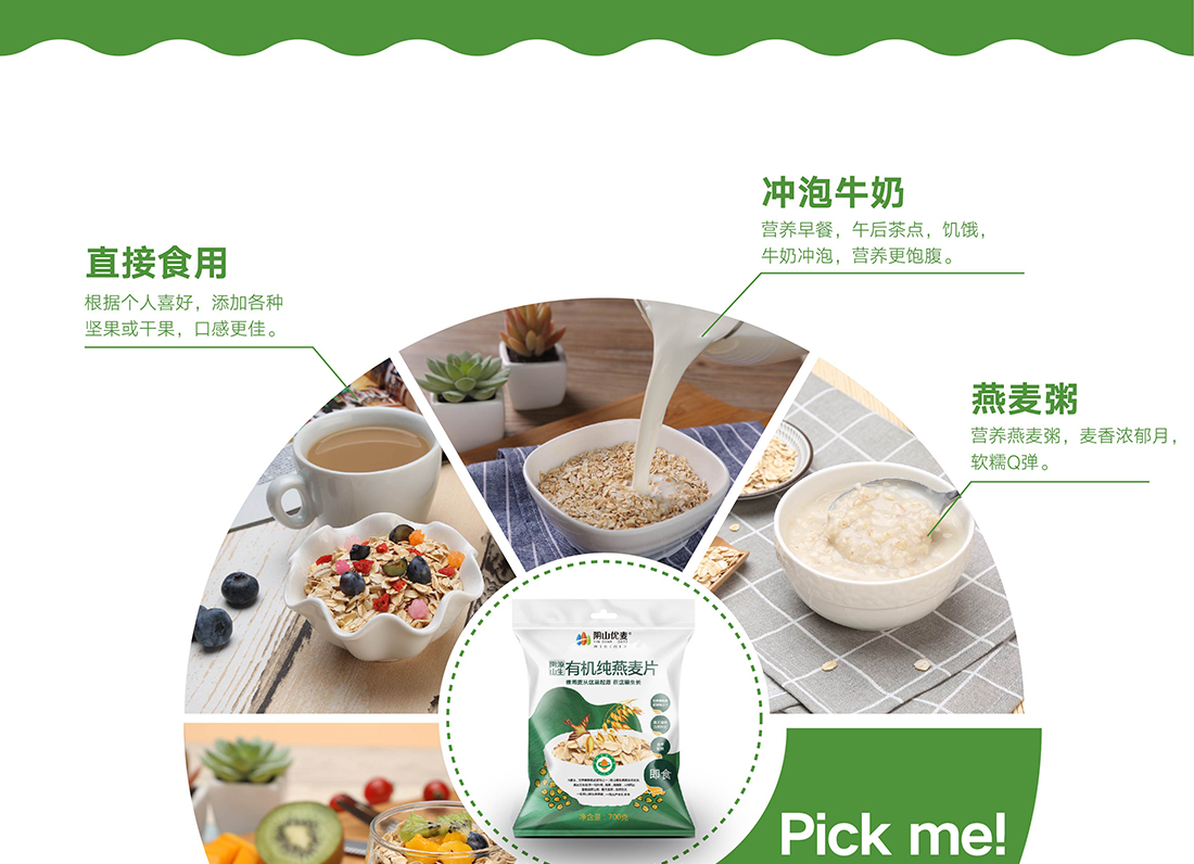 多樣吃法:直接食用、沖泡牛奶、燕麥粥、蛋糕、沙拉伴侶、燕麥冰激凌