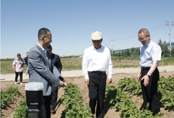 在試驗田前,冀福善向段志強一行介紹,公司為科學種植,合理輪茬,從2015年開始進入燕麥產(chǎn)業(yè),實施“馬鈴薯+燕麥”雙輪驅動發(fā)展戰(zhàn)略,在察右中旗成立子公司——內(nèi)蒙古陰山優(yōu)麥食品有限公司。目前,陰山優(yōu)麥已完成投資2.4億元,年產(chǎn)2萬噸燕麥香米、2萬噸燕麥片、2000萬支燕麥杯、6000噸燕麥粉(莜面)和2萬噸藜麥米加工生產(chǎn)線已建成并投入使用,陰山優(yōu)麥是“自治區(qū)農(nóng)業(yè)產(chǎn)業(yè)化重點龍頭企業(yè)”、“自治區(qū)扶貧龍頭企業(yè)”。同時,公司依托自身在加工薯種植管理技術、產(chǎn)品質量、倉儲能力等方面的優(yōu)勢,于2019年初在察右中旗成立子公司——內(nèi)蒙古蒙薯食品科技有限公司,計劃投資1.5億元,建設“年產(chǎn)8000噸低溫油炸薯條及2000噸果蔬脆片加工項目”,全力打造烏蘭察布市地標性產(chǎn)品,創(chuàng)建全國大的低溫油炸薯條、果蔬脆片深加工企業(yè),已于今年投產(chǎn)。